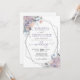 Belo convite para casamento de primavera ou verão com buquês florais de flores de boho silvestre, cor d'água pastel, em tons de roxo, violeta, lilac, lavanda, azul empoeirado, pêssego, rosa-pincel e verde-sábio e acentuado com letras e textos de cinza roxa e carvão e um quadro geométrico de cinza prateada. Entre em contato com o designer ANTES DE PEDIR por meio do Zazzle Chat ou makeitaboutyoustore@gmail.com para obter modificações no design, ajuda para personalizar ou transferir o design para outro produto ou gostaria de coordenar itens para seu pacote de casamento e/ou decoração e suprimentos de cerimônia e recepção.