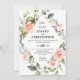 Elegante e ensolarado cor d'água, cor floral, floral, convite de casamento botânico, apresentando um buquê de rosas de cor d'água pastel macia e hydrangea em tons de rosa-pincel, rosa-pastel, pêssego e creme com folhas botânicas verdes e folhas de eucalipto. Quadro geométrico. Uma escolha moderna de design que é perfeita para primavera e veraneio cor-de-rosa, cor pastel e casamentos temáticos.Por favor, encontre mais designs e variações na minha loja de "papeira de blisswedingpaperie". E fique à vontade para me contactar para mais personalizações ou itens correspondentes.