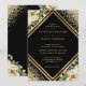 Convite floral de casamento elegante, preto, marfim e ouro, com detalhes de casamento, dentro de uma estrutura geométrica de ouro e adornado com rosas de marfim/creme e confete de ouro. Itens correspondentes disponíveis.