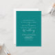 Este convite de casamento de frente e de trás de um teal formal geométrico é perfeito para um casamento moderno. O elegante design apresenta a tipografia de script clássico e de rico com um fundo teal. Salve o papel, incluindo mais detalhes na parte traseira do convite em vez de em uma placa de gabinete separada.