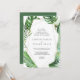 Este convite para casamento geométrico para palmeiras tropicais selvagens é perfeito para um casamento de praia ou destino. A design apresenta um conjunto exótico de folhas de palmeiras de banana-d'água verde, samambaias, folhagem, plantas botânicas e verde para uma sensação tropical de verão.