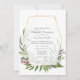 Convite de casamento de florestas verde, com ervas selvagens, samambaias, folhas e eucalipto, com estrutura geométrica de ouro personalizável para suas especificidades de evento.