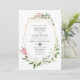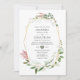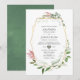 Convite de casamento de florestas verde, com ervas selvagens, samambaias, folhas e eucalipto, com estrutura geométrica de ouro personalizável para suas especificidades de evento.