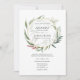Convite de casamento de florestas verde, com ervas selvagens, samambaias, folhas e eucalipto, com estrutura geométrica de ouro personalizável para suas especificidades de evento.