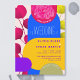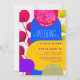 Este convite moderno apresenta cores brilhantes e brilhantes de fúcsia, magenta, amarela, azul e roxo. Tudo isso num fundo de formas geométricas e grandes neon e fuchsia eucalipto. O convite perfeito para um moderno e brilhante tema de casamento. Este convite faz parte de um pacote de casamento que pode ser totalmente personalizado.
