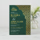 Convite para o casamento islâmico com o Emerald Green e o Dourado Design Geométrico Este belo convite para o casamento islâmico apresenta um impressionante fundo verde esmeralda com um design geométrico de ouro cativante inspirado na arquitetura islâmica tradicional. Os detalhes complexos criam um sentido de elegância e artista, fazer este convite como uma peça verdadeiramente única e memorável. A caligrafia árabe acrescenta um toque de significado cultural e espiritualidade à celebração.