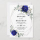 Convite para casamento floral azul-escuro marinho com elegante buquê de azul-marinho, azul-real, branco, prata, marfim de champanhe, rosa de cor esbranquiçada, hydrangea, ranunculus, pénia, botões de flores e folhas de eucalipto verde-sábio e elegante cor de água com estrutura neutra geométrica de brilho redondo. Entre em contato comigo para obter ajuda sobre a personalização ou se você precisar de outro produto com este design.