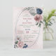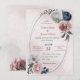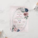 Bonito convite botânico para casamento, com flores românticas, cor-de-rosa, brancas e azuis-marinho, com folhas verdes numa bonito estrutura geométrica. É adequado tanto para os convites para o casamento como para o noivado. PARA MAIS PRODUTO CORRESPONDENTE, clique na coleção acima ou entre em contato comigo.