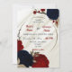 marinho elegante, flores azuis e vermelhas com folhas de ouro em bronze e convite para casamento em círculo de bronze Os detalhes da brilha são simulados