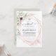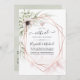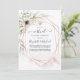 Convite online de cerimônia virtual de casamento de longa distância, com flores anêmonas e folhas de eucalipto em um quadro geométrico de ouro rosa.