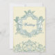 Lindas imagens de vintagem de uma armação rodeada por querubs e enxertos de flores e bruxelas banhadas em azul Marie Antoinette sobre fundo creme.