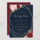 Este convite de casamento espanhol vermelho, brilhante, de ouro geométrico é perfeito para um casamento tropical. O design de marsala, artístico bordo, apresenta rosas de aquarelas, verdes, cor-de-rosa, burgundy e blush, combinados com verde, bem arrumados em torno de quadros de ouro geométricos, num buquê de flores gracioso e radiante.