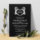 Convite de casamento preto elegante e gótico em preto e branco, com uma mão esquelética formando um coração, e um fundo preto escovado. Para combinar suprimentos assustadores, visite nossa coleção para encontrar mais itens coordenadores que correspondam a esse design.
