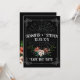 Faça o tom do seu casamento com este cartão elegantemente escuro "Salve a Data", projetado para aqueles que amam um toque de mistério e romance. O rico fundo preto fornece um contraste impressionante com a delicada peça central da teia aranha, emoldurada por intrincadas bordas ao estilo vintage que adicionam um encanto de eterno. Os florais suaves e mudos, em tons esbranquiçados e terríveis, sentam-se na base, criando uma estética etérea equilibrada que se sente cativante e refinada. Este cartão é a escolha perfeita para casais que procuram um design único e sofisticado que se destaca ao abraçar uma vibração sutil e encantadora.