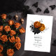O convite de casamento gótico de folha falsa de halloween inclui rosas pretas e laranja e uma cor damasco do crânio. Ideal para um casamento de jardim ou qualquer tema.