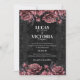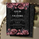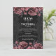 Convite de casamento Gótico Romântico. Rosas cor-de-água cor-de-rosa empoeirada no fundo vitoriano negro. Com seu olhar original e uma estética romântica escura, esse convite é perfeito para casais que querem mostrar seu estilo único. Se quiser modificar o texto, selecione "Detalhes". Para ajustar a posição, a fonte ou a cor do texto, clique em "Editar usando a Ferramenta de Design".