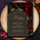 Elegante, preto, gótico vermelho verde floral, moody Black Casation. Ponha o tom para uma celebração romântica e sofisticada com este elegante convite de casamento floral vermelho e verde. Apresentando uma cor vermelha profunda e uma folhagem verde exuberante, esta design exumenta o charme do eterno com uma estética dramática e moedora. Perfeito para casais que amam cores ricas, ousadas e elegância clássica, este convite combina lindamente romance e refinamento, fazer-o como a primeira impressão perfeita para o seu dia especial.