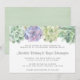 Convite de casamento horizontal botânico com uma borda superior composta por suculentes de aquarela verde e roxa e seus detalhes em uma fonte de cinza macia. Seus nomes estão em um roteiro bonito e a parte de trás tem uma lavagem de aquarela verde. Os suculentos adicionam um elemento natural excelente ao design. Estes convites são perfeitos para um casamento no deserto na primavera ou no verão.