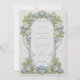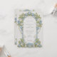 Este belo convite para o casamento apresenta um design de Art Nouveau eterno,, adornada com hídrangas azuis elegantes e uma folhagem verde esmagadora. A frente do cartão mostra padrões florais complexos entrelaçados com um trabalho de rolagem gracioso em tons pastéis macios de azul, verde e creme. A design detalhada cria uma atmosfera serena e romântica, perfeita para uma sofisticada celebração de casamento. O verso do convite continua o tema floral, destacando a data do casamento com um arranjo refinado de hortênsias e folhas. Ideal para casais que buscam uma mistura de elegância tradicional e encanto artístico, esse convite incorpora a essência do romance e da natureza.