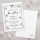 Este convite de casamento único e caprichoso é perfeito para casais que procuram adicionar um toque lúdico e criativo ao seu grande dia. Projetado em preto e branco clássico, ele tem o charme de uma obra-prima rabiscada à mão, como se desenhada amorosamente com anotações manuscritas. A peça central do design é uma moldura ondulante amarrada com um doce arco no topo, contendo os detalhes do seu casamento numa mistura de roteiros e fontes manuscritas para uma sensação divertida e pessoal. Ao redor do texto estão ilustrações peculiares e deliciosas, incluindo anéis de casamento, um bolo hierarquizado, corações, uma torre de champanhe, flores e um carro de "Recem casados". Estes rabiscos ao estilo de esboço e arte de linha desajeitada dão ao convite uma vibração moderna e descuidada enquanto ainda são elegantes. O verso acrescenta um toque pessoal extra com um monograma bonito, escrito à mão, das iniciais do casal enquadradas por pequenos corações. Totalmente personalizável, este design é perfeito para casais modernos que querem algo leve, na moda e cheio de personalidade. Celebre sua história de amor com este convite de casamento divertido e artístico! Disponível em uma versão de impressão ou você pode comprar como um convite digital para download.