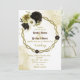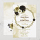Bonito convite de casamento botânico com flores marrom, marfim branco e douradas com folhas de ouro em uma bonito coroa circular. São simulados os detalhes do brilho dourado. É adequado tanto para os convites para o casamento como para o noivado. PARA MAIS PRODUTO CORRESPONDENTE, clique na coleção acima ou entre em contato comigo.