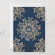 Um convite de casamento azul marinho escuro safira TOM JOAIA e dourado com um padrão de medalhão de sari ornamental exótico inspirado no estilo indiano COM UM DESIGN DE EXPLOSÃO SOLAR DE LOTUS E FLORAL. Este convite de casamento elegante e bonito no estilo indiano moderno é perfeito para qualquer ocasião formal COM UM TEMA DE NOITES ARÁBICAS, ALADIM, MARROQUINO OU INDONÉSIO DA ÁSIA ORIENTAL. Projetado por Chrissy H. Studios, LLC. Todos os Direitos Reservados.