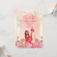 Casamento indiano salve a data com um casal de noiva fofo, flores de lótus cor-de-rosa, vestidos de casal de noiva indiana salve o cartão.