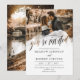 O convite para casamento de fotos informais com você é convidado, escrito em uma bela caligrafia através de uma abertura transparente de aquarela decorando sua foto. Adicione outra foto à parte traseira do convite de casamento.