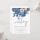 Marinho Azul Florais Informal Casamento De Script. Flores elegantes e folhagem caem do topo. Casamento está em um script de estilo de escrita manual de tendências definidas. Personalize facilmente o resto do texto para seus próprios detalhes. Para a conveniência de seus convidados para o rsvp e ver mais detalhes, eles podem digitalizar o código QR que leva ao seu site de casamento. Seu código QR será gerado automaticamente para atualizar o código de amostra no design, quando você simplesmente alterar o URL de amostra no modelo com o URL do seu próprio site de casamento.