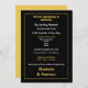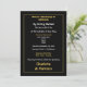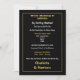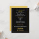 Um convite de casamento simples e direto, muito informal, em tons de preto, branco e dourado.
