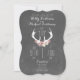 Um convite de casamento com ilustração de um par de cervos brancos decorados com margaridas cor-de-rosa e brancas. O fundo é inspirado no quadro. Personalize o texto.