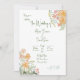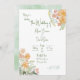 Simples buquês de margaridas em uma nova competição buscam um convite moderno e estilizado. Elementos de caligrafia moderna em verde-floresta, que você pode personalizar para qualquer cor desejada. Buquês de canto aquoso em verde-sábio, laranja-zistido e rosa quente na frente. Com lavagem a aquarela e iniciais do casal no reverso.