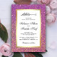 Convide seus convidados com este elegante convite de casamento, com uma falsa borda de ouro e um belo fundo de brilho roxo. Basta adicionar os detalhes do seu evento neste modelo fácil de usar para torná-lo um convite de tipo único. Sacudir a placa para adicionar o monograma da noiva e do noivo na parte traseira da placa.
