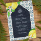 Amaze seus hóspedes com este elegante convite de casamento muçulmano com lindos limões e folhas sobre o fundo do azulejo mosaico azul com 'Bismillah' na caligrafia árabe. Basta adicionar os detalhes do seu evento neste modelo fácil de usar para torná-lo um convite de tipo único.