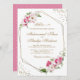 Convide seus convidados com este elegante convite de casamento com lindas flores rosa com falso quadro de hexágono de folha de ouro e 'Bismillah' na caligrafia árabe em fundo branco. Basta adicionar os detalhes do seu evento neste modelo fácil de usar para torná-lo um convite de tipo único. Sacudir a placa para revelar um padrão de pontos rosa e branco na parte traseira da placa.