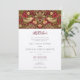 Este maravilhoso convite para o casamento apresenta o intrincado e amado padrão do 'Ladrão de Morangos' de William Morris, famoso por seus influentes designs durante o movimento Artes e Artesanatos. A rica tapeçaria da flora e da fauna em vermelhos profundos, verduras terríveis e castanhos quentes cria uma sensação romântica e luxuosa, perfeita para convidar convidados a comemorar amor e compromisso. O trabalho de arte detalhado, com aves ladrões em meio a fruta e florescências, define um cenário brilhante e elegante para os detalhes do evento. Impresso em papel de alta qualidade, o convite é tanto uma notificação quanto uma manutenção, incorporando a beleza e o artesanato de uma era passada.