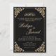 Convite para Casamento Islâmico Negro Elegante. Feita para o casal muçulmano celebrar sua cerimônia de Nikah ou Shaadi casamento. Há uma fonte de script de ouro de luxo na frente. Há uma borda de arquivo de rolagem vintage no canto. Edite a cor da placa e a cor, o tipo e o tamanho das fontes com a ferramenta design do Zazzle. Muitos tipos de papel disponíveis para escolher. Entre em contato com o designer para ajudá-lo a editar o texto dos nomes do casal no cartão.