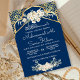 Convites Casamento Islâmico Dourado Floral Mínimo Azul