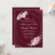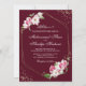 Convide seus convidados com este elegante convite de casamento com lindas flores rosa com falso quadro de hexágono de folha de ouro e 'Bismillah' na caligrafia árabe sobre fundo vermelho escuro. Basta adicionar os detalhes do seu evento neste modelo fácil de usar para torná-lo um convite de tipo único. Sacudir a placa para que ela revele um padrão de pontos vermelhos e dourados na parte traseira da placa.