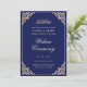 Convite para Casamento Muçulmano de Walima. fundo azul marinho com borda ouro no estilo ornamentado e fontes de script tradicionais. Você pode personalizar a cor da placa frontal e traseira e editar as fontes também. Edite os nomes da noiva e do noivo, data e local para tornar o convite exclusivo para você. SuaLinhaParaDesign
