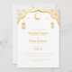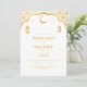 Surpreenda seus amigos e família com esses convites de casamento modernos e elegantes, com mesquita dourada e texto personalizado de sua escolha. Adicione facilmente seus detalhes clicando na opção "personalizar".
