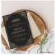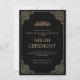Convocação para Casamento Islâmico Islâmico da Cerimônia de Nikah. Fundo preto sólido com fonte de script ouro e um design de borda no canto. Você também pode personalizar os nomes, a data e as informações do local. Você pode adicionar texto à placa traseira, se necessário. O delaLineForDesign no Zazzle.