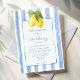 Listras azuis-de-mão limões licores italianos funk-praia cartoes de convite para casamento modelo para descarregamento instantâneo, vintage retro desfeito convites de casamento, listras azuis e limões, convites de casamento italianos, convites de casamento de limão, convite de casamento especial