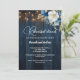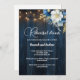 Um janto elegante de ensaio de casamento Convite com caligrafia elegante, completado por maravilhosas madeiras azuis, luzes de cordas de jardim e floral azul branco com brilho dourado que pode ser facilmente personalizado com você antes dos detalhes do janto de casamento. Com esta carta personalizada, você está um passo mais perto de transformar sua celebração em um evento notável.