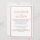 Convocação de Casamento Laranja de Cobre Branca Elegante. Redação formal tradicional com elegante design de tipografia moderna. Texto de cobre laranja e carvão em branco com borda fina de cobre e impresso com uma mídia original mista martelada com impressão de abstrato de cobre moderno. Personalize com seu próprio texto. Visite nossa loja, Austen & Grace, para ver a suíte de casamento de cheios, produtos correspondentes e muito mais, e entre em contato conosco se precisar de assistência contact@austenandgrace.com