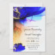 Incrível convite de casamento com a arte translúcida de tinta a álcool. Este convite de casamento é decorado com cores ricas de tinta em índigo, azul, roxo, violeta, laranja, pêssego e ouro. Edite facilmente o modelo para os detalhes de casamento desejados. Arte original da artista internacional Pauline Benjes. Veja nossas coleções para mais abstratos bonitas sobre convites para casamento, decoração domiciliar e muito mais. Casamento Laranja Dourado Azul Moderno.