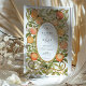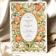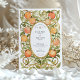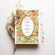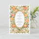 Celebre a sua união com este convite de casamento incrivelmente único, inspirado pela elegância encantadora do movimento Art Nouveau. Este design apresenta uma ilustração de cor d'água exuberante das laranjas maduras e das delicadas flores brancas de laranja, criando um quadro vibrante e alegre. A fruta e as flores estão graciosamente entrelaçadas com folhas e vinhas verdes estilizadas, formando uma intrincada borda que lembra um pomar ensolarado. Um quadro oval ornamentado em um tom antigo de ouro contém lindamente seus detalhes de casamento, que são apresentados em tipografia timidamente elegante. Perfeito para um casamento de verão, com o tema dos citros, da Toscana, ou destino, este convite é uma obra de arte que vai cativar seus convidados.