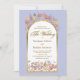 Design de flor selvagem elegante e quic num arco dourado sobre fundo de lavanda em pó com tipografia dourada e monograma na moda. É tão romântico e floral para aquele dia especial da sua vida.