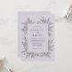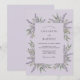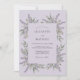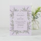 Este design apresenta um cenário roxo lavanda sereno adornado com delicados ramos de lavanda perfumada e folhagem verde sálvia suave. Os elementos botânicos criam uma disposição orgânica que evoca a atmosfera pacífica do campo francês. Esta paleta de roxo claro e verde suave cria uma estética atemporal e aromática perfeita para um evento de verão ou primavera.