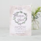 Lavanda empoeirada e convite para o casamento de jardins de sábio com o anel de lavanda de folhas florais que cercam lindamente os nomes da noiva e do noivo.